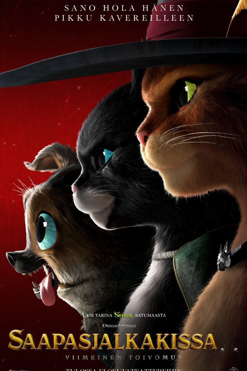 Say hola to his little friends.Puss in Boots discovers that his passion for adventure has taken its toll: He has burned through eight of his nine lives, leaving him with only one life left. Puss sets out on an epic journey to find the mythical Last Wish and restore his nine lives.