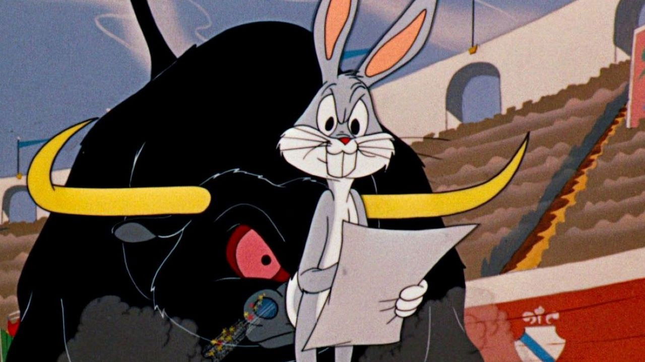 Description: Bugs Bunny, once again making that "wrong turn at Albuquerque", burrows into a bullring where a magnificent bull is making short work of a toreador. The bull bucks Bugs out of the arena, prompting the bunny to declare "Of course you realize, this means war!" The deft Bugs' arsenal comes plenty packed, as he uses anvils, well-placed face slaps and the bull's horns as a slingshot. The bull fights back, using his horns as a shotgun barrel. The bull's comeback is short-lived; just after Bugs makes out his will, he lures the bull out of the arena, just in time to set up a rube-like device that leads to the bull's defeat.