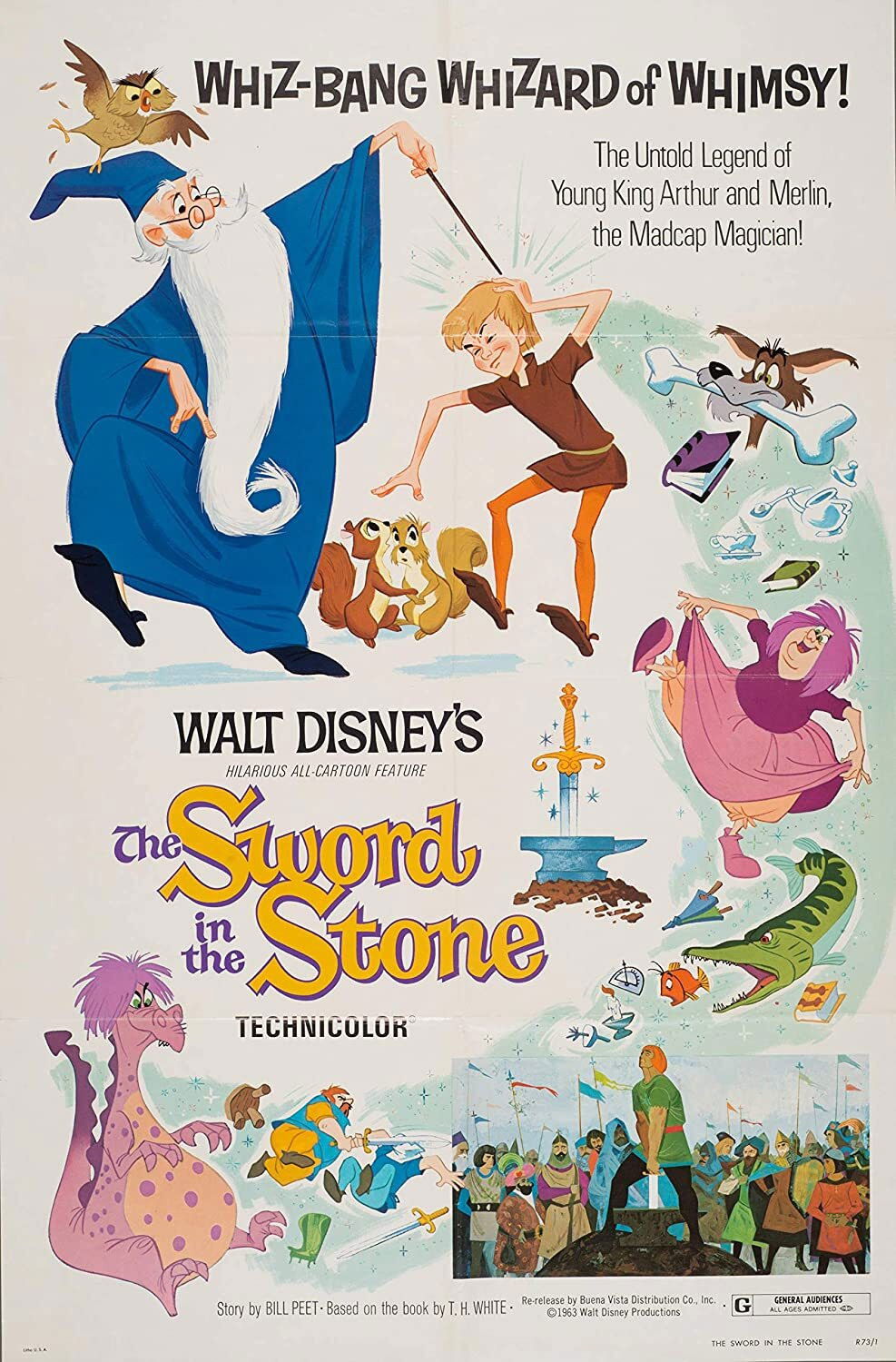 Tired of living in a Medieval mess... Merlin uses all his magic powers to change a scrawny little boy into a legendary hero!Wart is a young boy who aspires to be a knight's squire. On a hunting trip he falls in on Merlin, a powerful but amnesiac wizard who has plans for him beyond mere squiredom. He starts by trying to give him an education, believing that once one has an education, one can go anywhere. Needless to say, it doesn't quite work out that way.