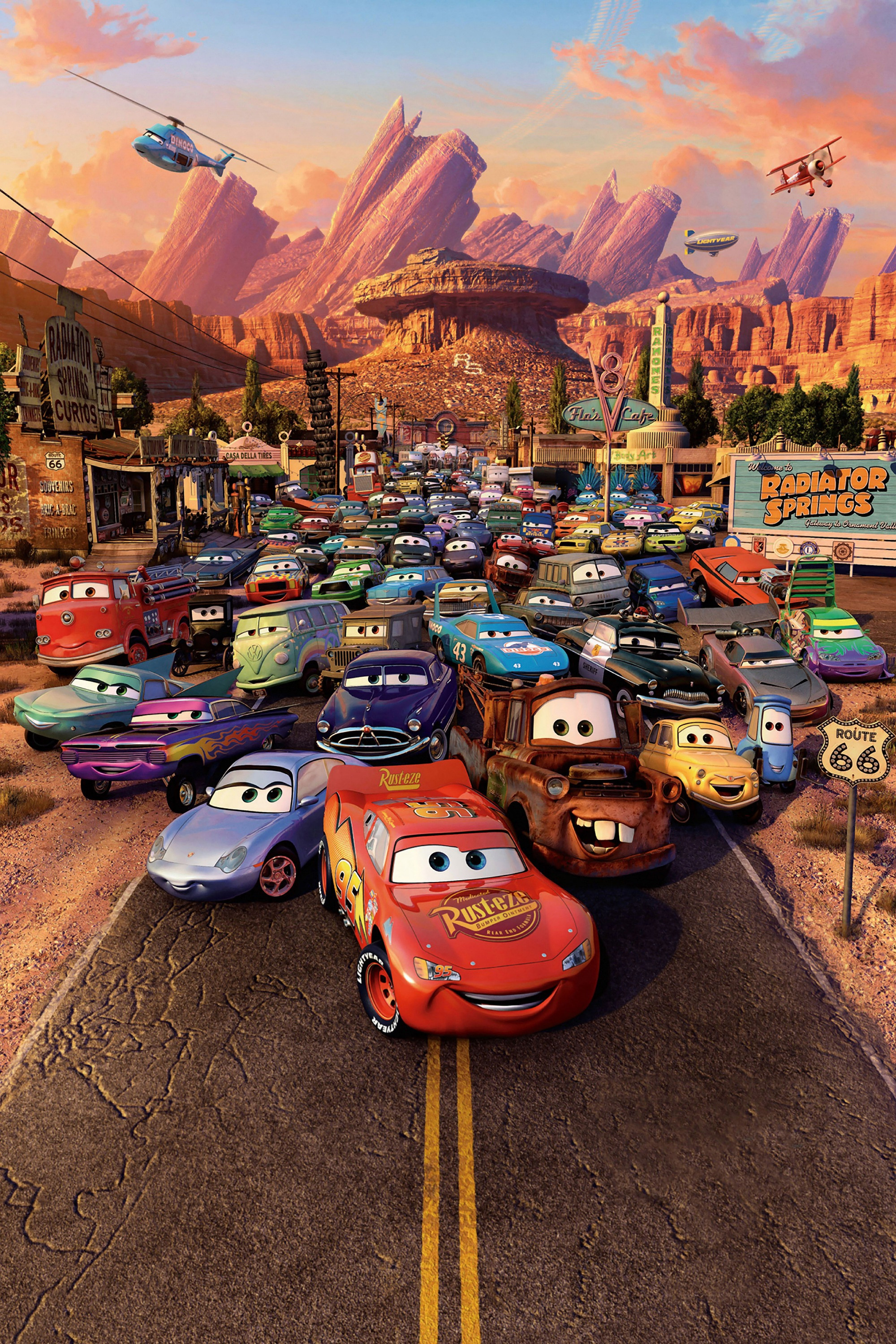 Description: Lightning McQueen, a hotshot rookie race car driven to succeed, discovers that life is about the journey, not the finish line, when he finds himself unexpectedly detoured in the sleepy Route 66 town of Radiator Springs. On route across the country to the big Piston Cup Championship in California to compete against two seasoned pros, McQueen gets to know the town's offbeat characters.