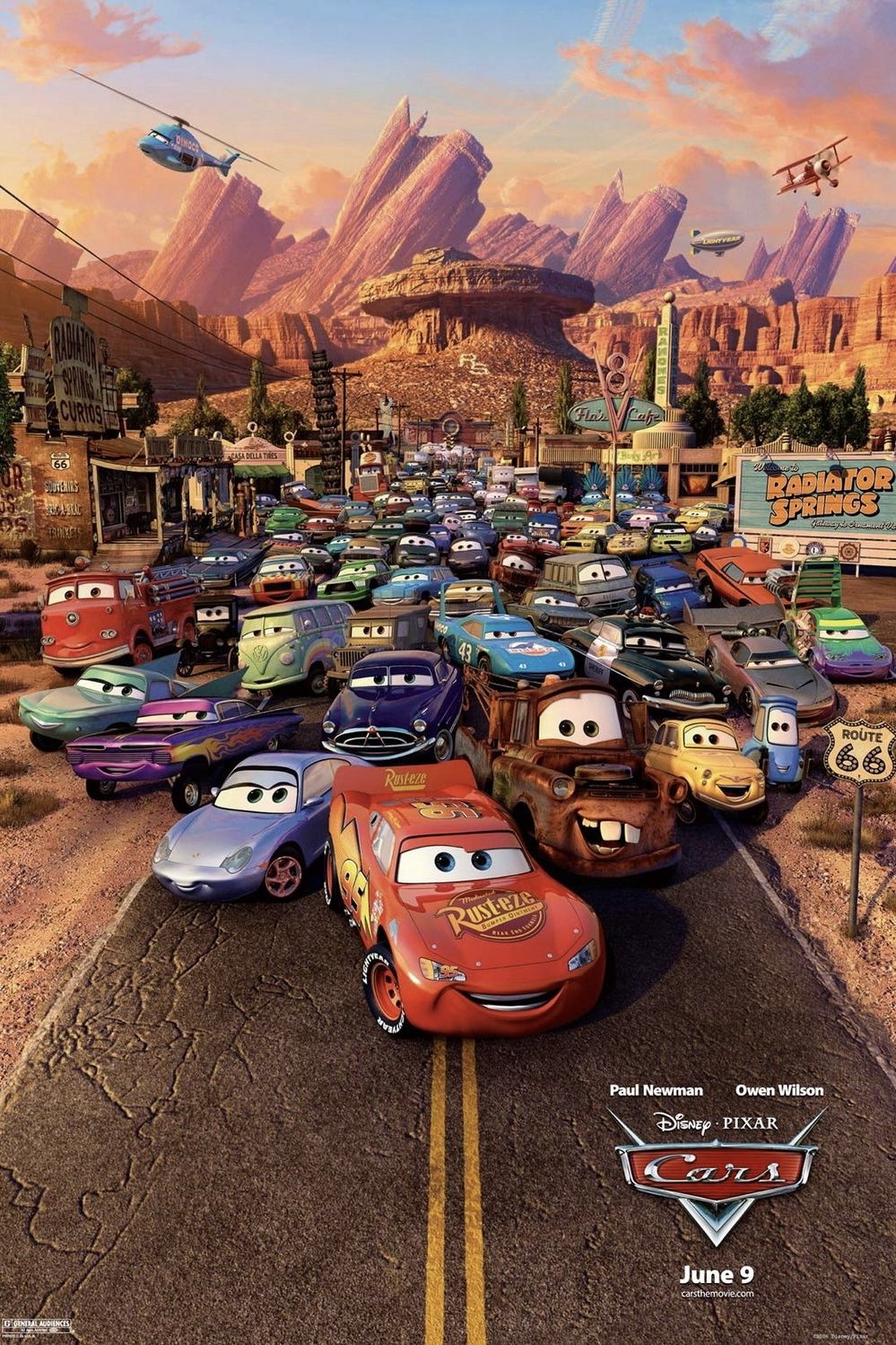 Ahhh... it's got that new movie smell.Lightning McQueen, a hotshot rookie race car driven to succeed, discovers that life is about the journey, not the finish line, when he finds himself unexpectedly detoured in the sleepy Route 66 town of Radiator Springs. On route across the country to the big Piston Cup Championship in California to compete against two seasoned pros, McQueen gets to know the town's offbeat characters.
