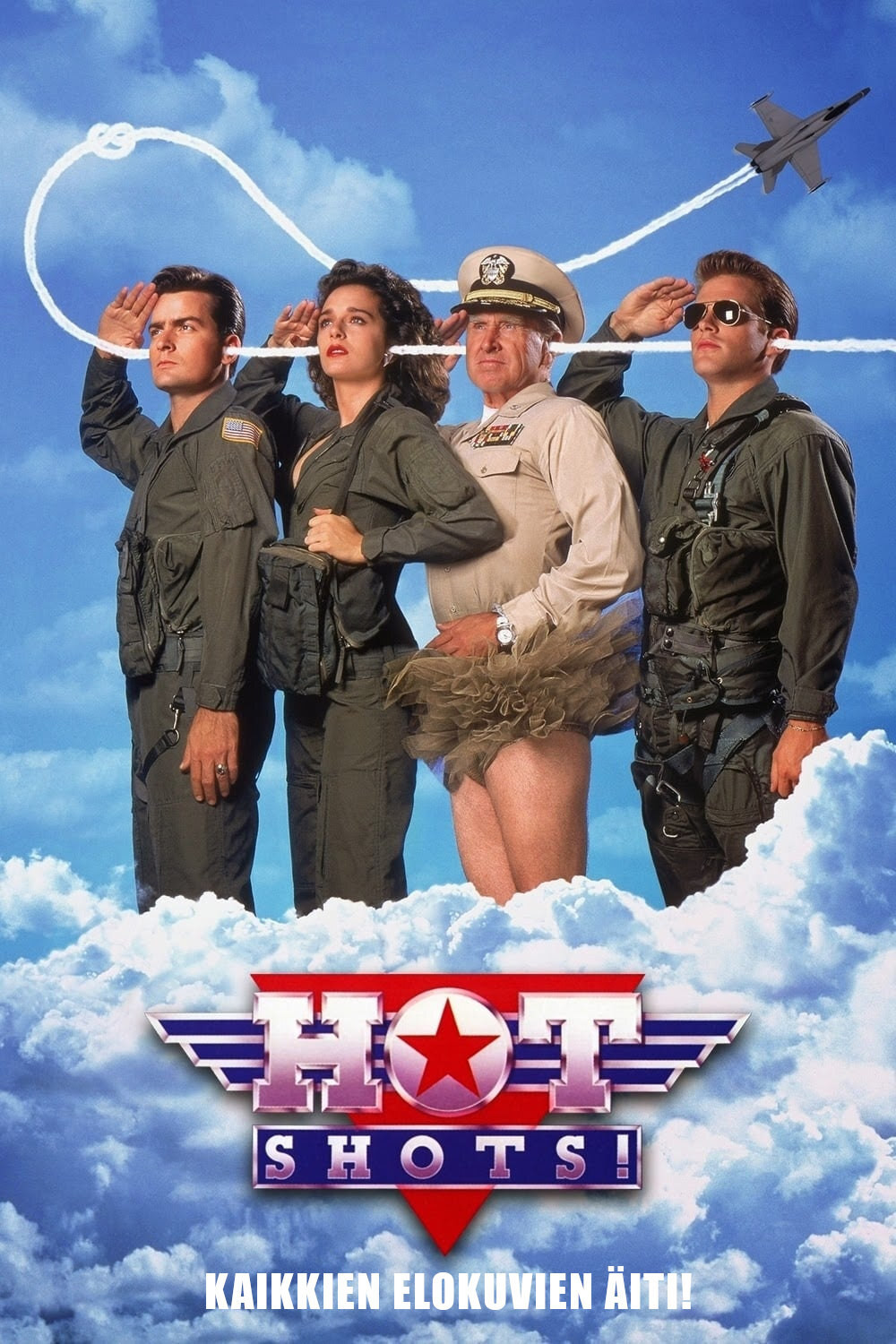 The mother of all movies.The gang that created Airplane and The Naked Gun sets its sights on Top Gun in this often hilarious spoof starring Charlie Sheen, who previously only inspired laughs with his personal life. He plays Topper Harley, a fighter pilot with an axe to grind: clearing the family name. He gets involved in a relationship with Valeria Golino, a woman with an unusually talented stomach. But his mission is to avenge his father. Lloyd Bridges, late in his career, revealed an aptitude for this kind of silliness, here as a commander who is both incredibly dim and delightfully accident prone. Directed by Jim Abrahams, the film makes fun of a variety of other films as well, from Dances with Wolves to The Fabulous Baker Boys. It was so successful that they all returned in the sequel, Hot Shots! Part Deux.